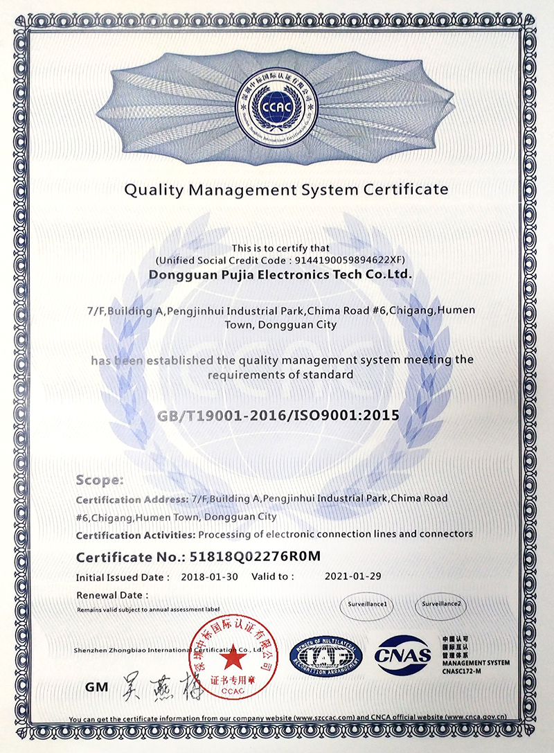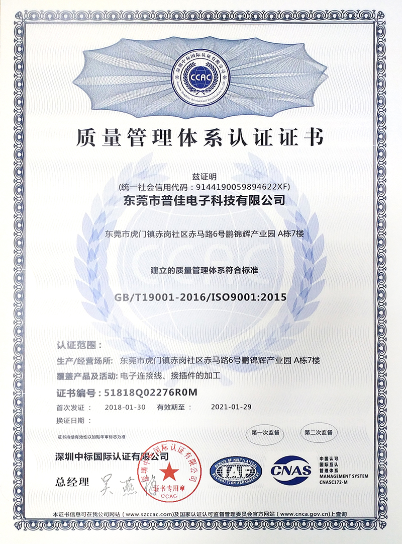 熱烈祝賀普佳公司取得ISO9001質(zhì)量管理認證
