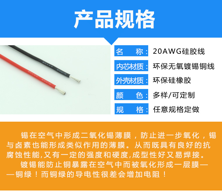 20AWG特軟硅膠線 200℃高溫阻燃硅膠線 環(huán)保硅膠線